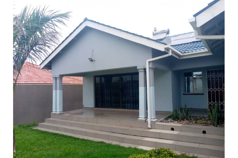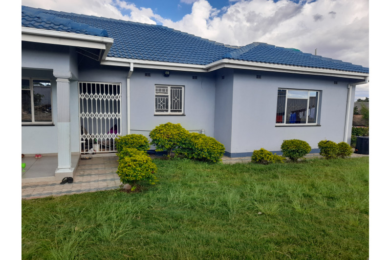 Immaculate 4 bedroomed house (mes), elegantly fitted spacious kitchen, walk-in pantry, large lounge, dining room, study, inside storeroom and fitted cupboards throughout. The property has a borehole and 5000L storage tank, has a double lock up garage and is walled on 3 sides and palisade fenced on 1 side. It has a sliding gate and well paved. It has motion sensors, alarms, solar system and solar geyser. The corner stand sits on 1339 sqm and is suitable for both residential and commercial use.
