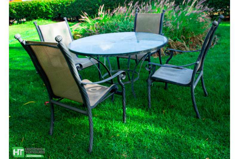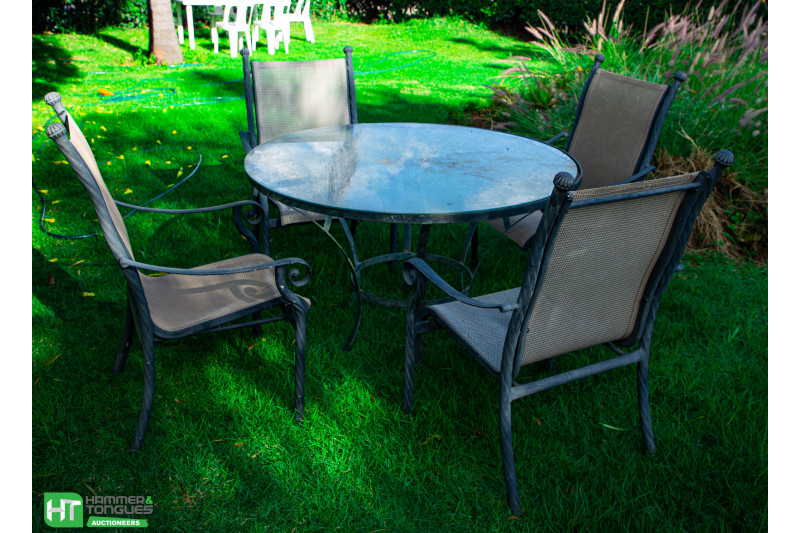 5PCE GARDEN SET(TABLE W G/TOP +4 PATIO CHAIRS)[AC9499U][AC9508U][AC9533U][AC9602B] 2 CHAIRS DMGD , 2 CHAIRS TORN